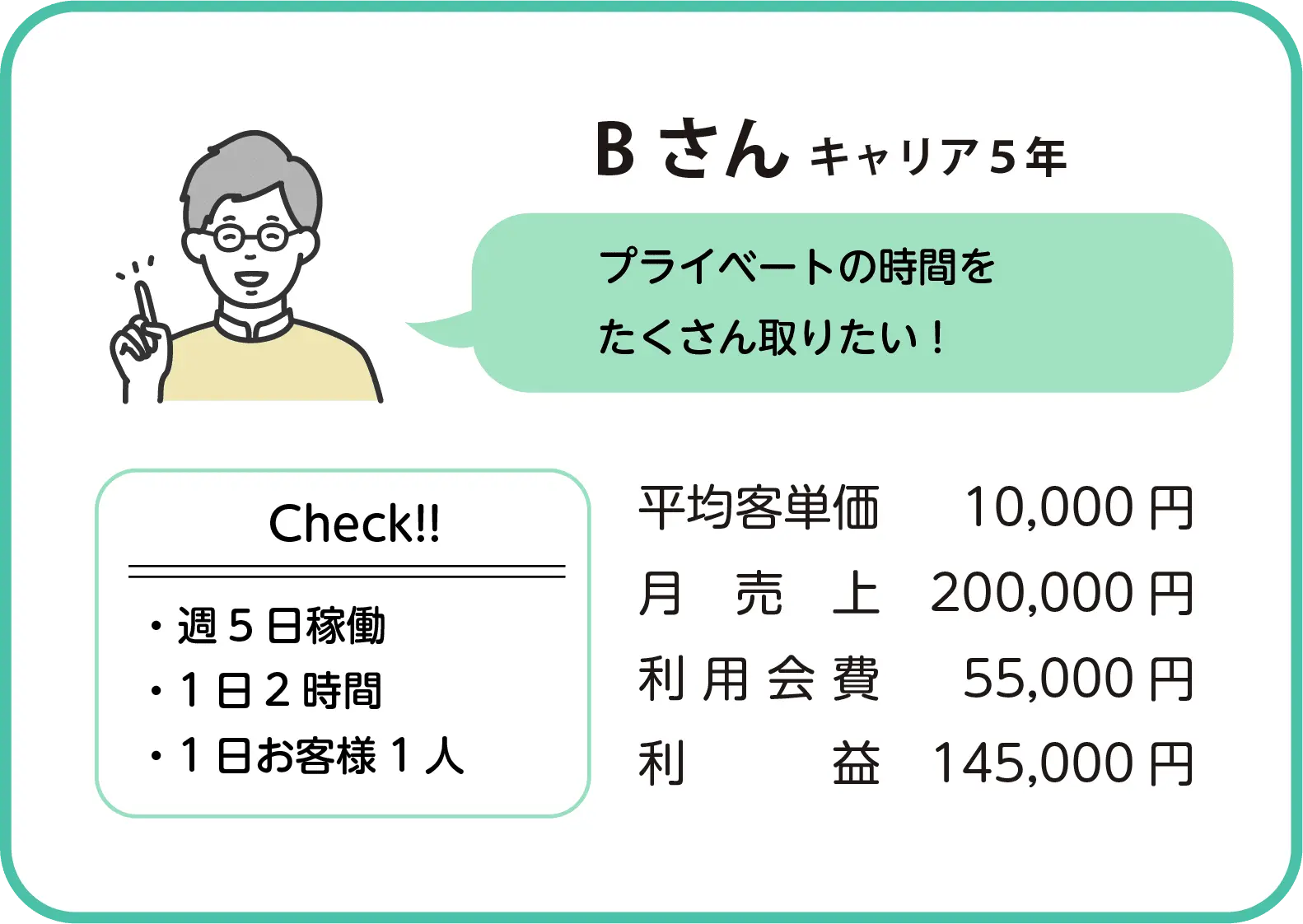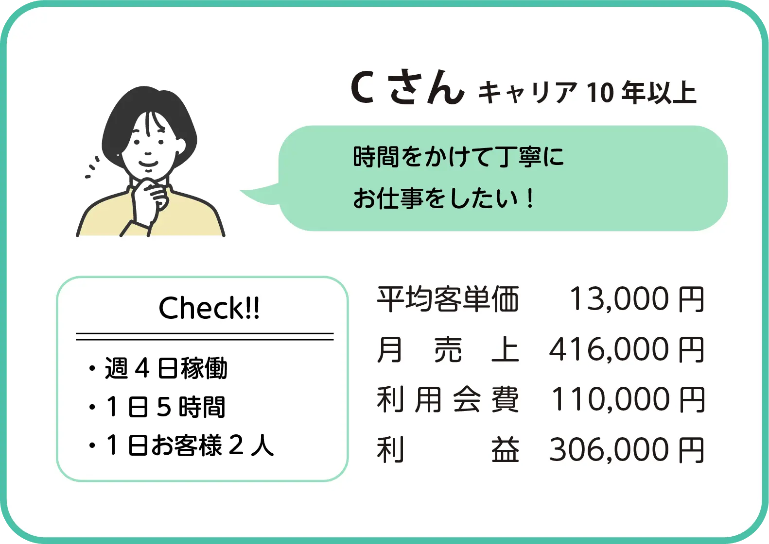 パーセンテージではいただかず時間制のため売上金額によって左右されることはありません。